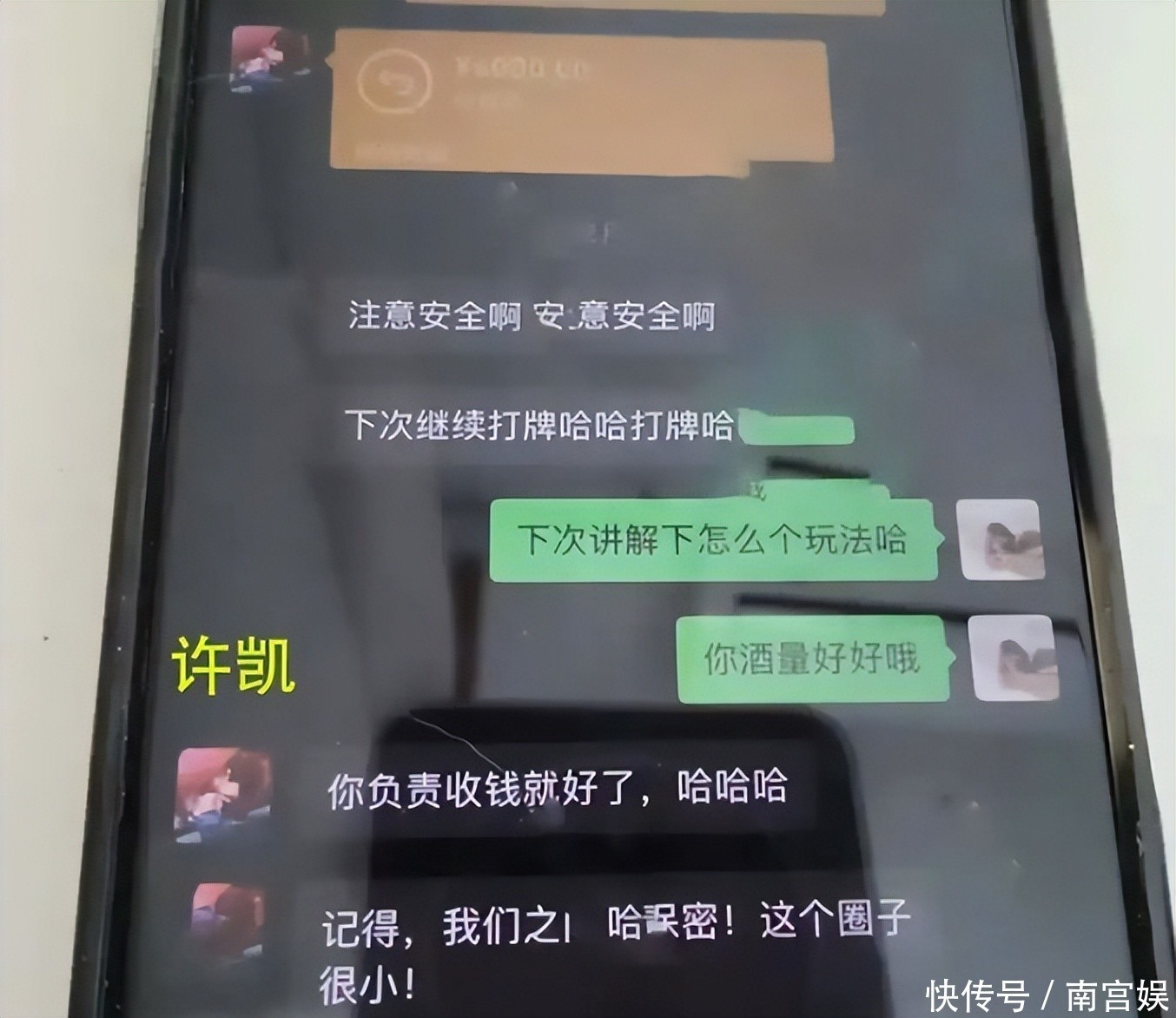 这期间两人也有对话,并直接提到了“打牌”,而许凯还在聊天过程中嘱咐许荔莎要保守秘密,不可以讲出去,还直言“这个圈子很小”!