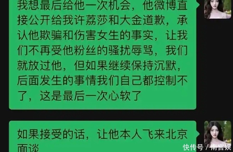实际上,此次许荔莎爆料许凯赌博之前,已经放话可以给许凯“最后一次机会”,她的要求很简单,只要许凯可以公开给她和大金道歉,承认他曾经欺骗和伤害过女生,她可以就此放过许凯。